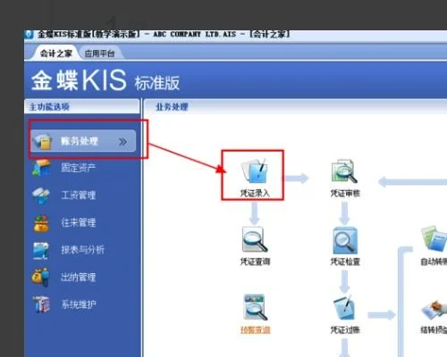 1、第一步,打开金蝶财务软件,然后在“账务处理”界面中单击“凭证录入”选项,如下图所示,然后进入下一步。