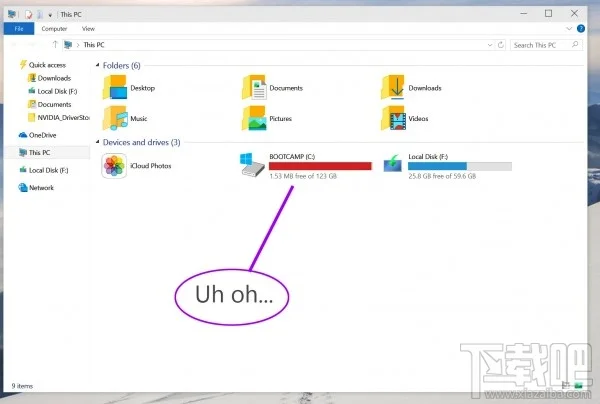 在浪费了大把时间之后,Jason Mick终于发现了问题所在。因为在登录之后,他发现系统分区的“已使用存储空间”已经爆红了。