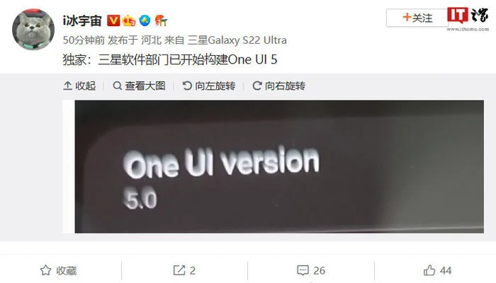 据微博博主 @i 冰宇宙 的爆料截图,三星软件部门已开始构建 One UI 5.0。