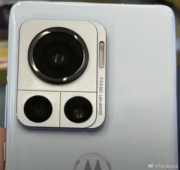 真机图背部有一颗超大体积的主摄,旁边还显示搭载了HP1传感器,这是三星的ISOCELL HP1,拥有两亿像素,单位像素面积为0.64μm,支持ChameleonCell像素合成。