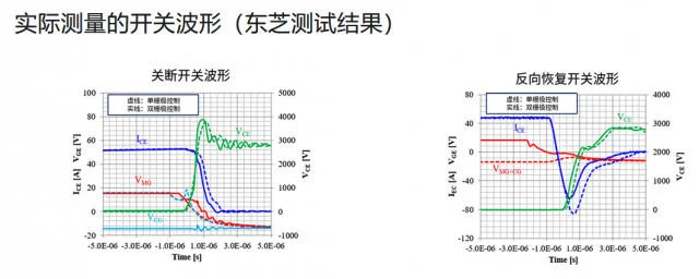 新开发的双栅极RC-IEGT结合栅极控制技术,关断和导通损耗分别比传统单栅极结构降低24%和18%,反向恢复损耗降低32%。因此,实际测量值中总开关损耗降低24%,而导通损耗没有任何增加。