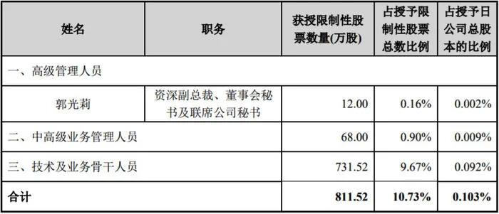 中芯国际发布了《关于向激励对象授予预留部分限制性股票的公告》。中芯国际计划向1175名激励对象授予811.52万股限制性股票,截至本次授予后,预留部分限制性股票全部授予完毕,授予价格为20元/股,授予日为2022年6月21日。截至本次授予后,预留部分限制性股票全部授予完毕。 本次股票激励对象包括高级管理人员、中高级业务管理人员和技术及业务骨干人员,占授予限制性股票总数比例分别为0.16%、0.90%和9.67%。 激励对象名单及授予情况 【来源:C114通信网】【作者:颜翊】
