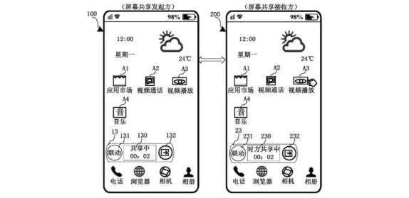 可以看出, 这项专利不仅仅是分享屏幕的内容,还能在不同的手机设备之间进行操作联动。 如果这项功能应用到新的鸿蒙系统上,用户体验将会有很大提升。