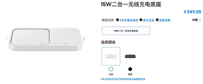 据了解到,三星今年推出了 15W 无线充电底座,二合一版官网售价 549 元。 预计三星 Wireless Charger+ 的无线充电功率将更高 。
