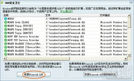 4、如果上步操作无效,请你通过360安全卫士(点击下载最新版360安全卫士),修复“Winsock LSP”