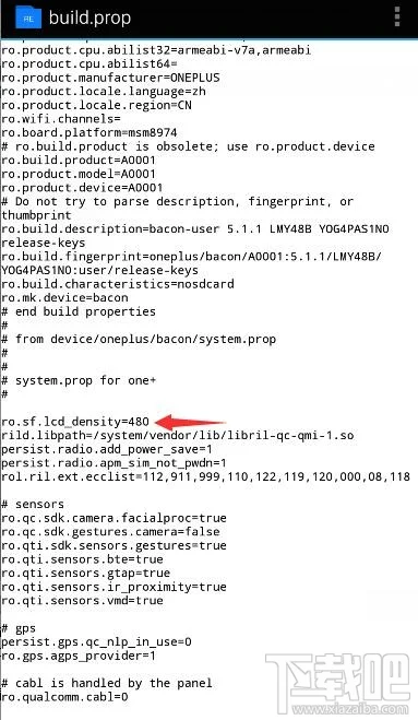 4:打开build之后找到ro.sf.lcd_density=400(480)这一行字(这行字靠近最下面),把400(480)改成400(注意保存),然后重启手机就ok了(重启前确认已经修