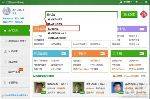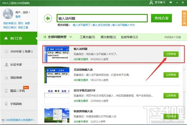 打开360安全卫士,找到工具栏中的人工服务,然后输入“输入法问题”进行搜索,找到解决方案之后就点击修复;