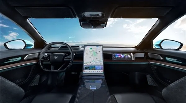 值得注意的是,哪吒S拥有17.6 英寸悬浮式中控屏,其采用了镁铝合金材质外壳,厚度最薄13.3mm,黑边最窄6.5mm,屏占比接近90%,承担整车娱乐和车辆控制功能。