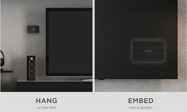 因为身材迷你的原因,官方演示了塞口袋、贴在显示器背部、挂墙、内嵌等多种摆放形式。