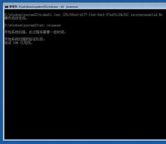 接着输入“bcdedit /set {GUID} recoveryenabled No”后回车运行,目的是禁用Windows的自启修复功能,其中{GUID}就是上面resumeobjec选项显得的一长串字符,可以直接复制,每台电脑GUID都不一样,所以小编就用这样的方式标注了!