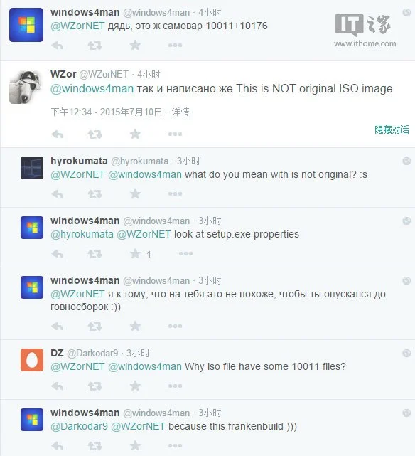 7月11日消息,Win10预览版10176的简体中文版ISO镜像已于昨晚泄露,该版本可以用微软提供的KMS客户端安装密钥激活。不过细心的用户发现,该版本貌似“血统”并不纯正,后经俄罗斯著名爆料人WZor证实,该版本并非官方原版。