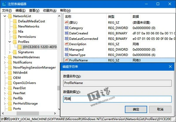 其中的ProfileName即代表网络名称,将其修改为你希望看到的名字即可。在删除不需要的网络时,同样依据ProfileName键值来确定。