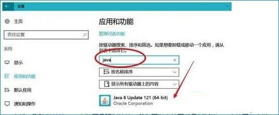 2、点击左侧的【默认应用】,在右侧查看计算机中是否以安装java,如果有的话,选中将其卸载掉;