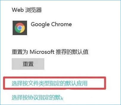 5、在右侧拉到最下面,点击“选择按文件类型指定的默认应用”;