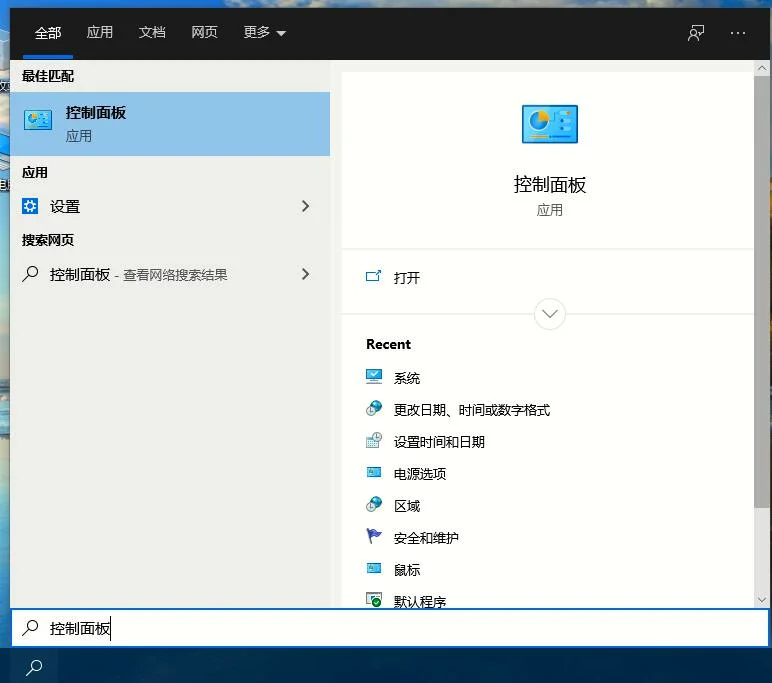 直接在“开始”菜单旁边的搜索框中搜索“控制面板”,然后单击“打开”。