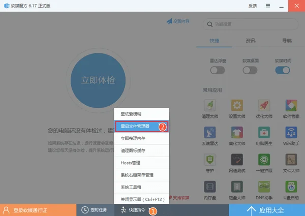 如果你安装了魔方的话,可通过下面的方法快速重启资源管理器:
