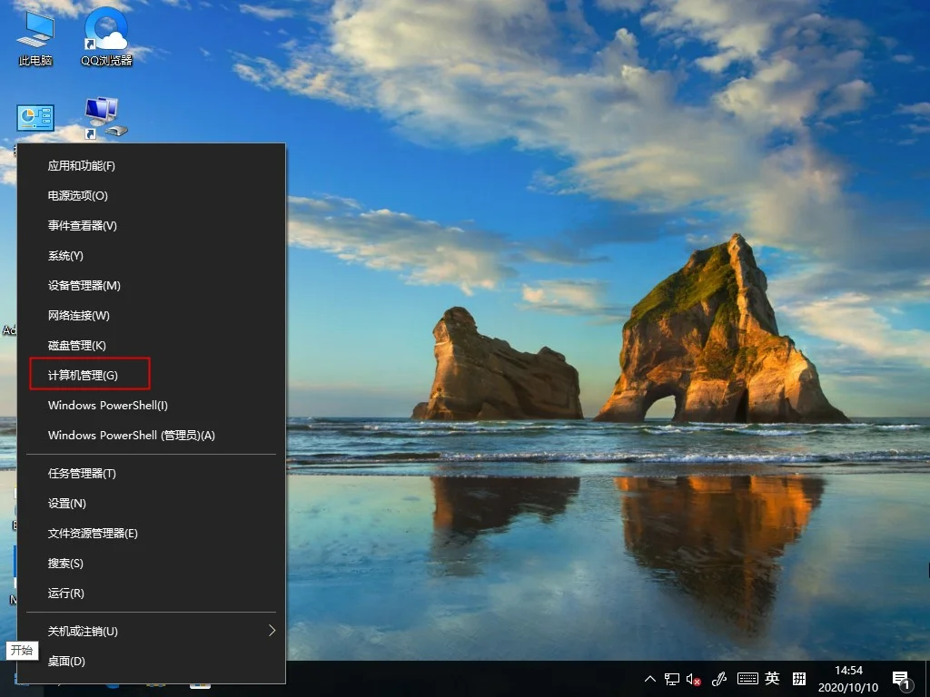1、点击系统左下侧的windows图标,点击鼠标右键,选择“计算机管理”选项。