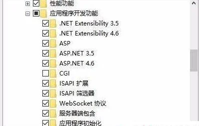 展开 应用程序开发功能,将“CGI”以外的所有选项勾选;