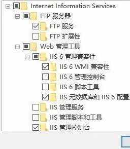 展开 Web管理工具 IIS 6管理兼容性 ,勾选 iis 6 WMI 兼容性、IIS元数据库和IIS 6配置;