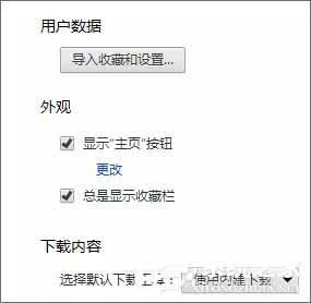 3、把“外观”下面的“显示‘主页’按钮”勾选。