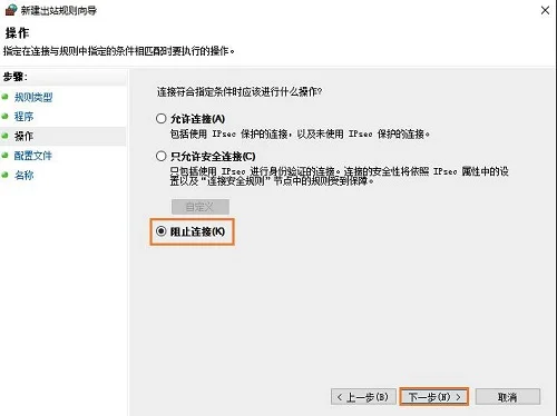5、找到需要禁止的程序,勾选“阻止连接”,然后按照提示完成操作就可以了。