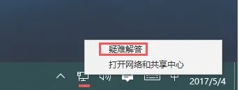1、右击任务栏的网络图标,点击”疑难解答”;