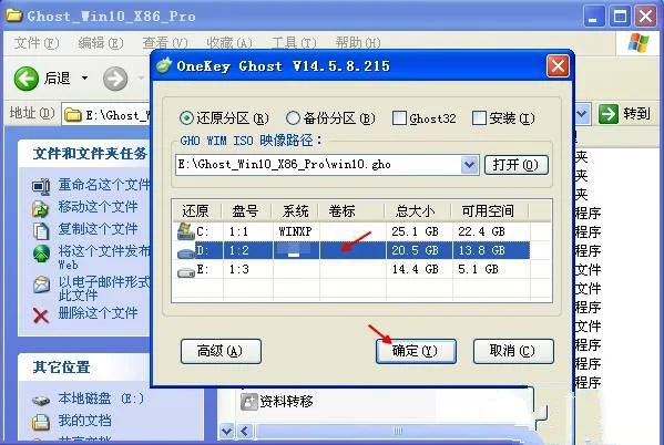 3、保持默认的设置,选择win10安装位置,如D盘,确定;