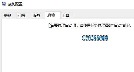 切换到 启动 选卡,点击【打开任务管理器】,打开任务管理器 将所有的开机启动软件