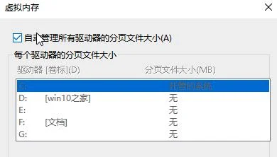 在虚拟内存界面勾选 自动管理所有驱动器的分页文件大小;