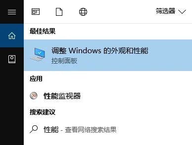 在小娜中搜索 “性能”,点击【调整windows 的外观和性能】;