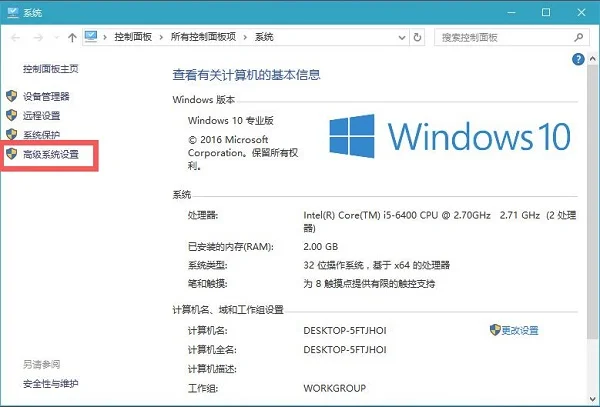 2、在打开的属性界面打开左侧的“高级系统设置”如图。