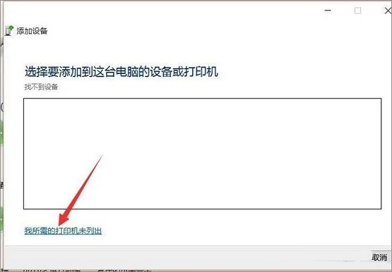 2、进入”控制面板“界面后,在”设备和打印机“界面中,点击”添加打印机“项,在弹出的窗口中点击”我所需要的打印机未列出“按钮,如下图所示: