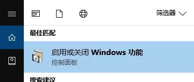 按下win+s打开小娜,搜索 windows 功能,在结果中点击 启用或关闭Windows 功能;