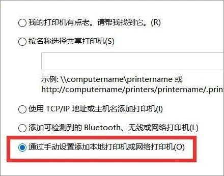 3、接着点击【通过手动设置添加本地打印机或网络打印机】,点击下一步;