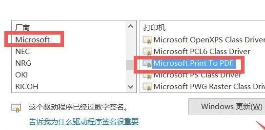 5、在选择打印机器型号左侧厂商下方选择:Microsoft,然后在右侧选择“Microsoft Print To PDF”,然后点击下一步即可完成虚拟打印机安装;
