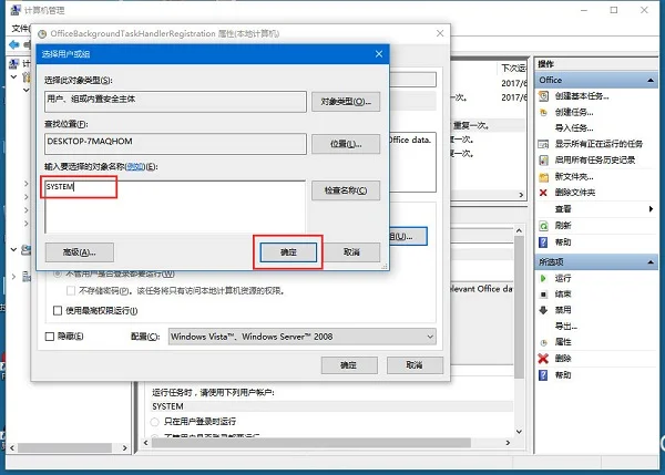 6、输入 “SYSTEM”,点击确定。
