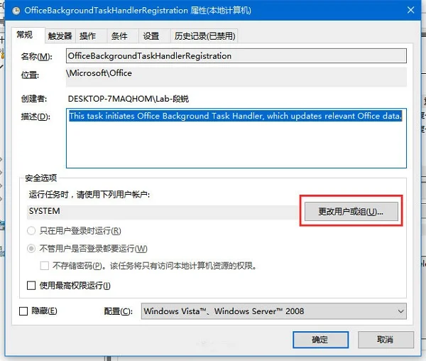 我们要做的就是将它的运行账户改为系统账户,使其在后台默认操作,而不弹窗干扰我们的正常使用操作。