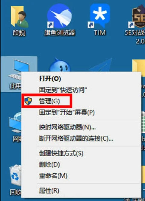 1、鼠标右击“此电脑”,选择“管理”。