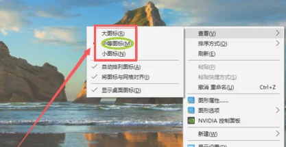 在Win10系统桌面空白处右键,将鼠标移动到查看上面,在选择中等图标,选择后,桌面图标就会变得比较适中