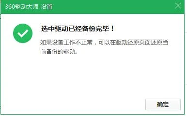 4、备份完成后会提示,如果设备工作不正常,可以在驱动还原面还原当前备份的驱动。但若是重新安装系统了,我们只需重新安装360驱动大师即可自动识别需要恢复的驱动!
