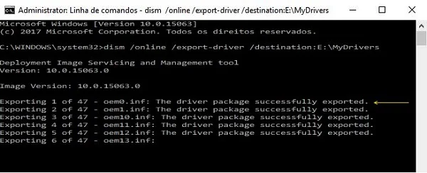 该命令通过“/ online / export-driver”参数,DISM将浏览并导出“C: Windows System32 DriverStore”中的所有现有驱动程序。执行命令后,我们可以在命令行的窗口中跟踪导出的演进以及将要导出的文件夹的数量,如图: