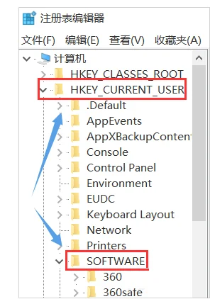 在编辑器左侧依次找到HKEY_CURRENT_USERSoftwarePoliciesMicrosoftMMC,