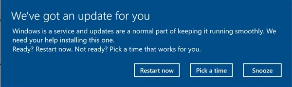 微软表示已经意识到问题的严重性,所以“创作者更新”将允许用户将设备重启推迟3天执行,3天后设备再度提醒用户重启时,用户依旧可以选择继续推迟,这也为用户准备重启PC提供了充足的准备时间。