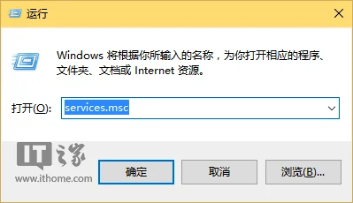 2、输入services.msc,点击“确定”,如下图——