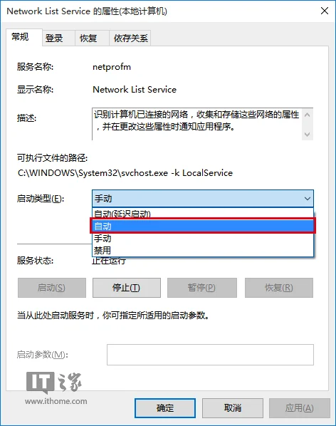 5、在“启动类型”中选择“自动”,然后点击“确定”,如下图——