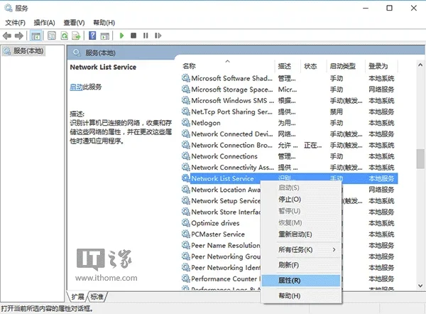 3、在打开的“服务”窗口中,找到Network List Service(网络列表服务)