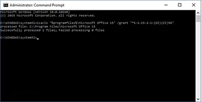 icacls “%programfiles%Microsoft Office 15” /grant *S-1-15-2-1:(OI)(CI)RX