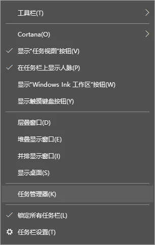 1、右击【任务栏】空白处,选择【任务管理器】。