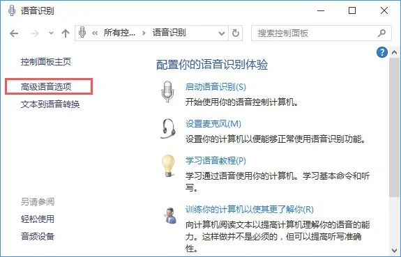 Win10系统如何关闭语音识别? 1、在开始菜单单击鼠标右键,选择“控制面板”; 2、将控制面板【查看方式】修改为“大图标”,在下面点击“语音识别”; 3、点击左侧的“高级语音选项”; 4、将下面“启动时运行语音识别”前面的勾去掉,点击确定即可。