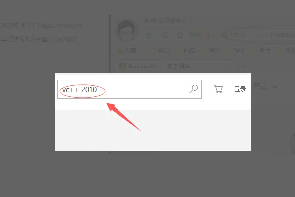 2、打开网页后百在窗口右侧搜索度框内输入“vc++ 2010”,然后点击右侧的搜索按钮。